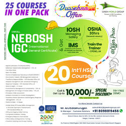 Enroll in NEBOSH IGC Course in Chennai and get 25 safety courses in one pack.